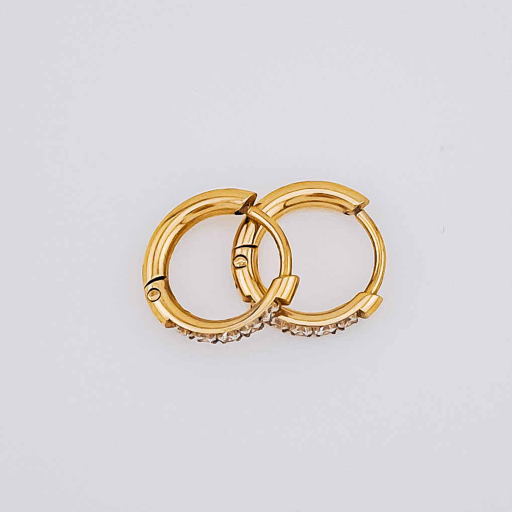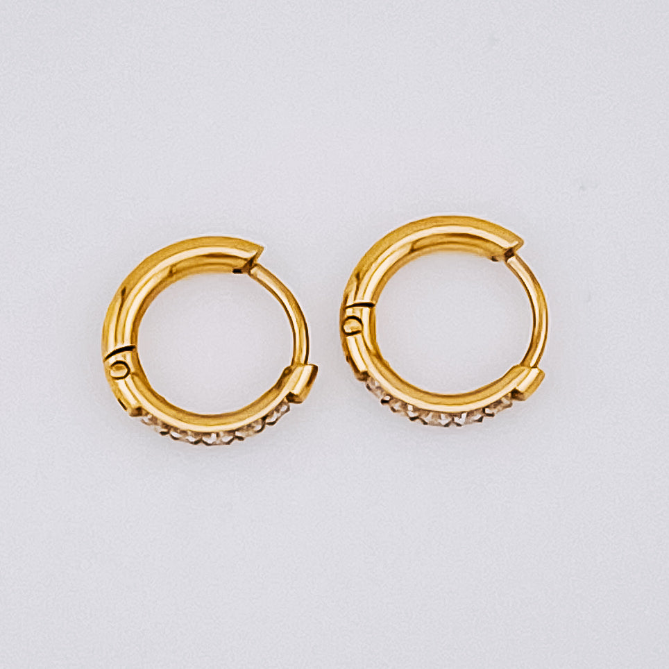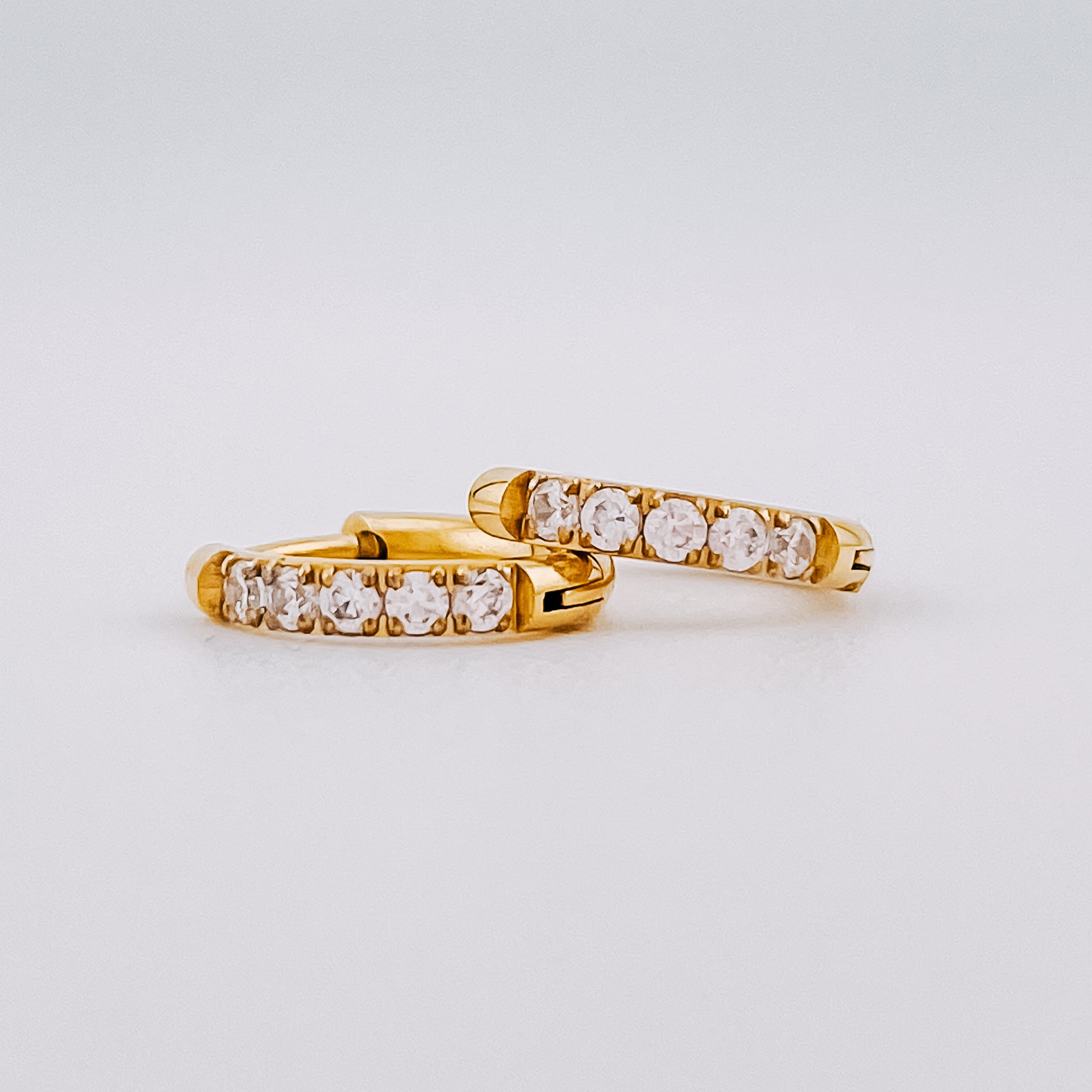 Elevate your everyday style with the Auré Hoop Earrings. A minimalist design for effortless sophistication. Crafted in a sleek, polished finish and embellished with high-quality zircon stones. A timeless essential, made to be worn and loved. A perfect gift for her!