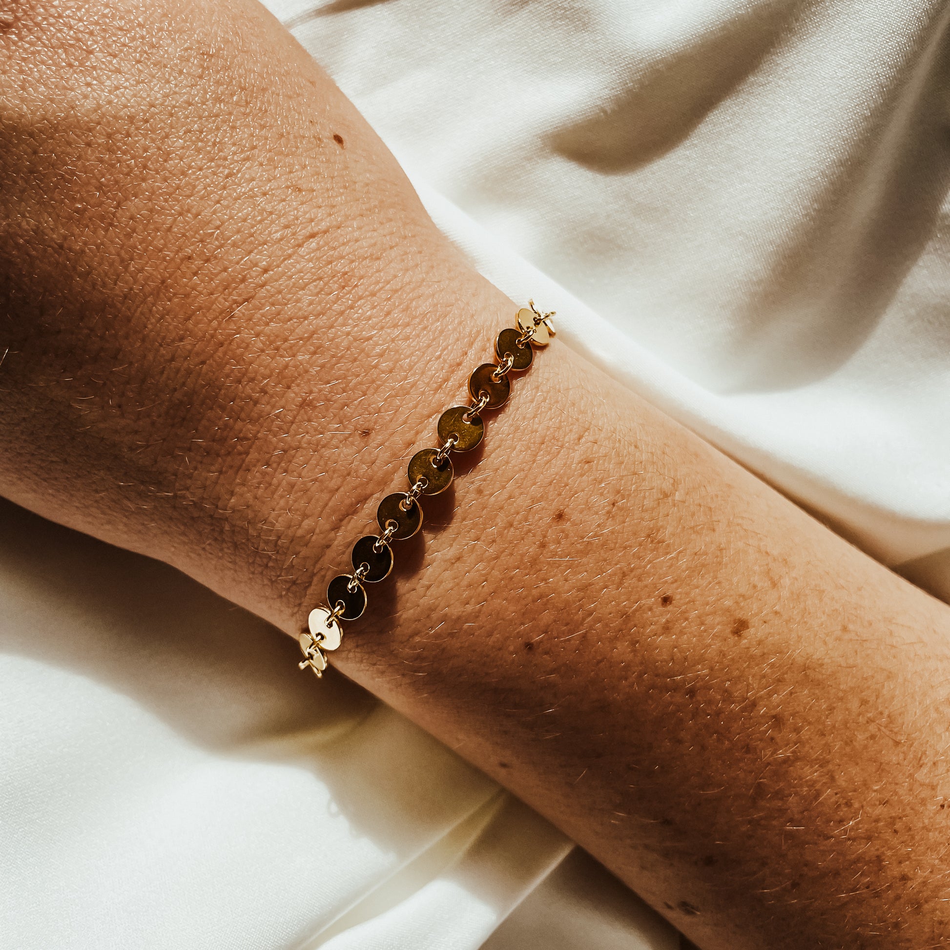 Elegant in its simplicity, the Halo features polished, delicate discs that catch the light with every movement. Minimal and refined, it's the perfect piece for effortless everyday wear or subtle layering.