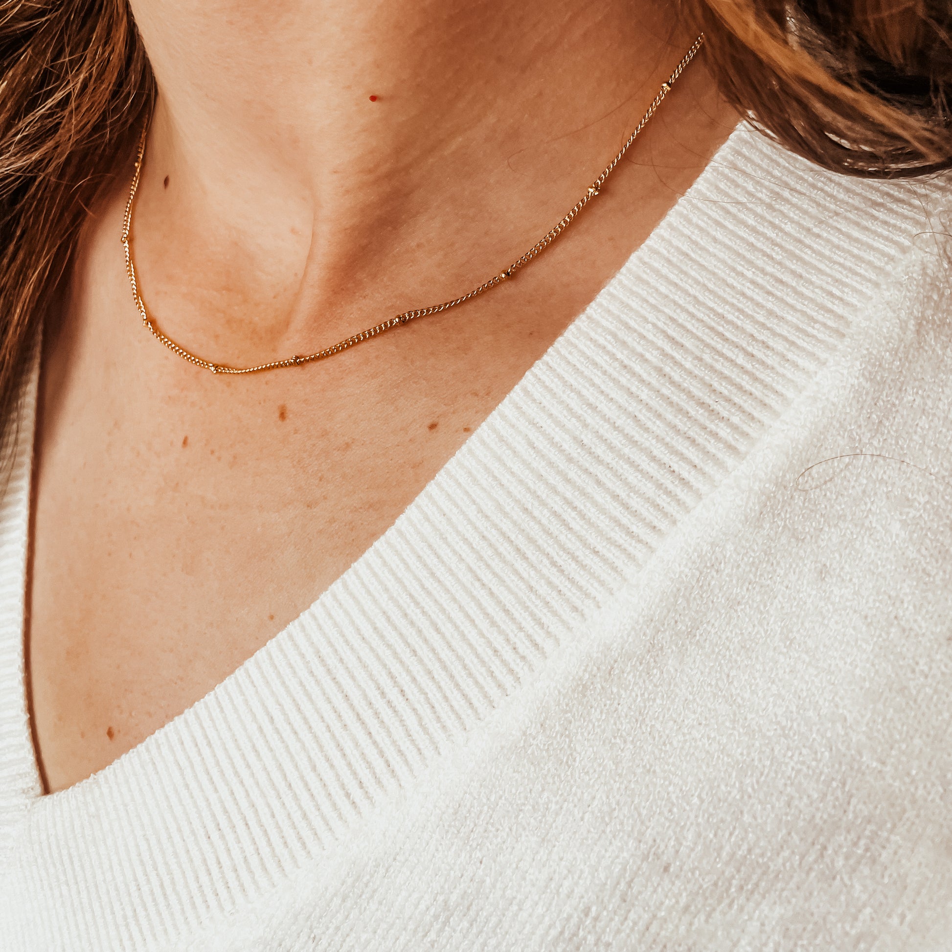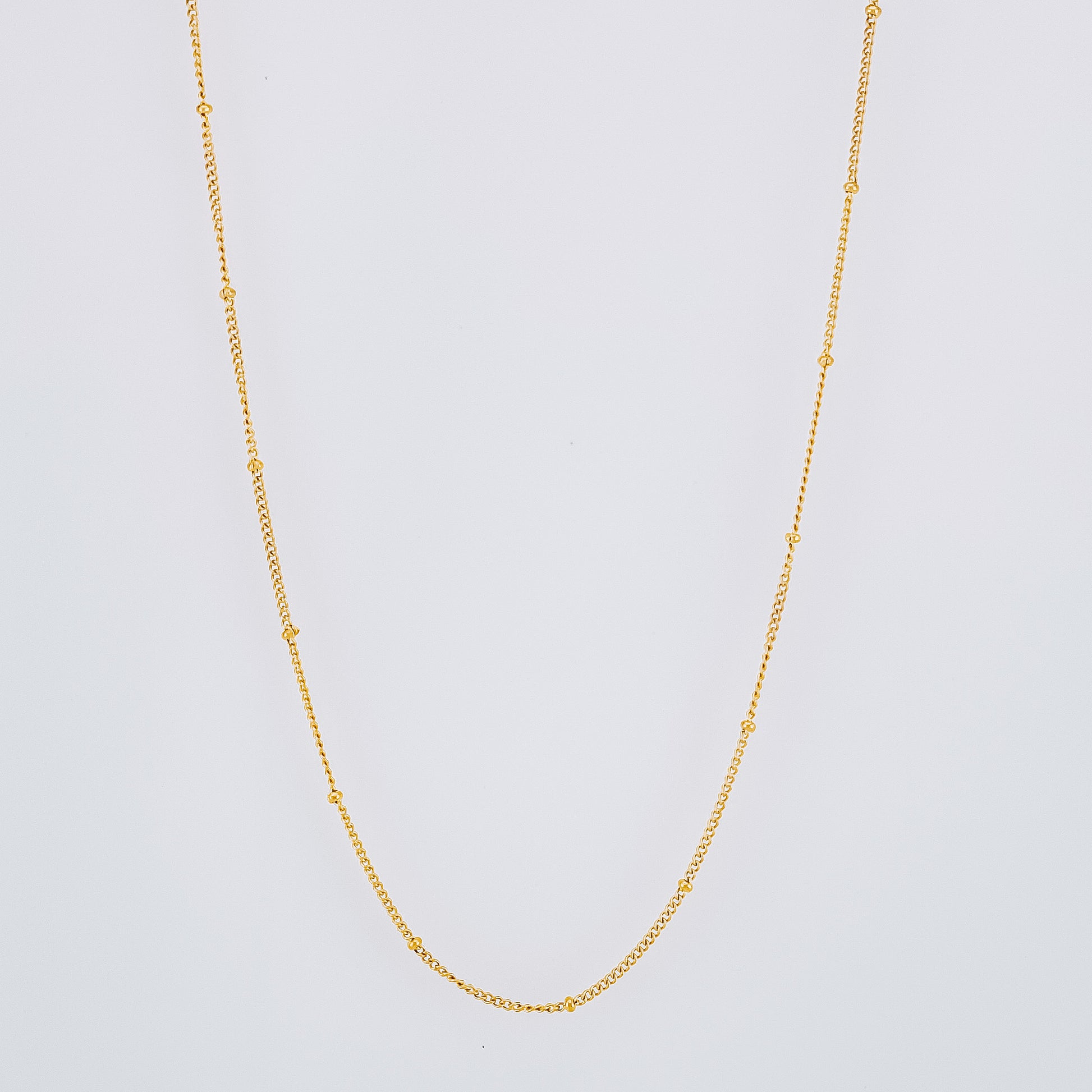 The Infinity features delicate, evenly spaced beads along a slender chain, creating a modern and sophisticated look. Its minimalist design makes it perfect for layering with other necklaces or wearing alone for understated elegance. Lightweight, comfortable and versatile, it’s ideal for daily wear or special events.