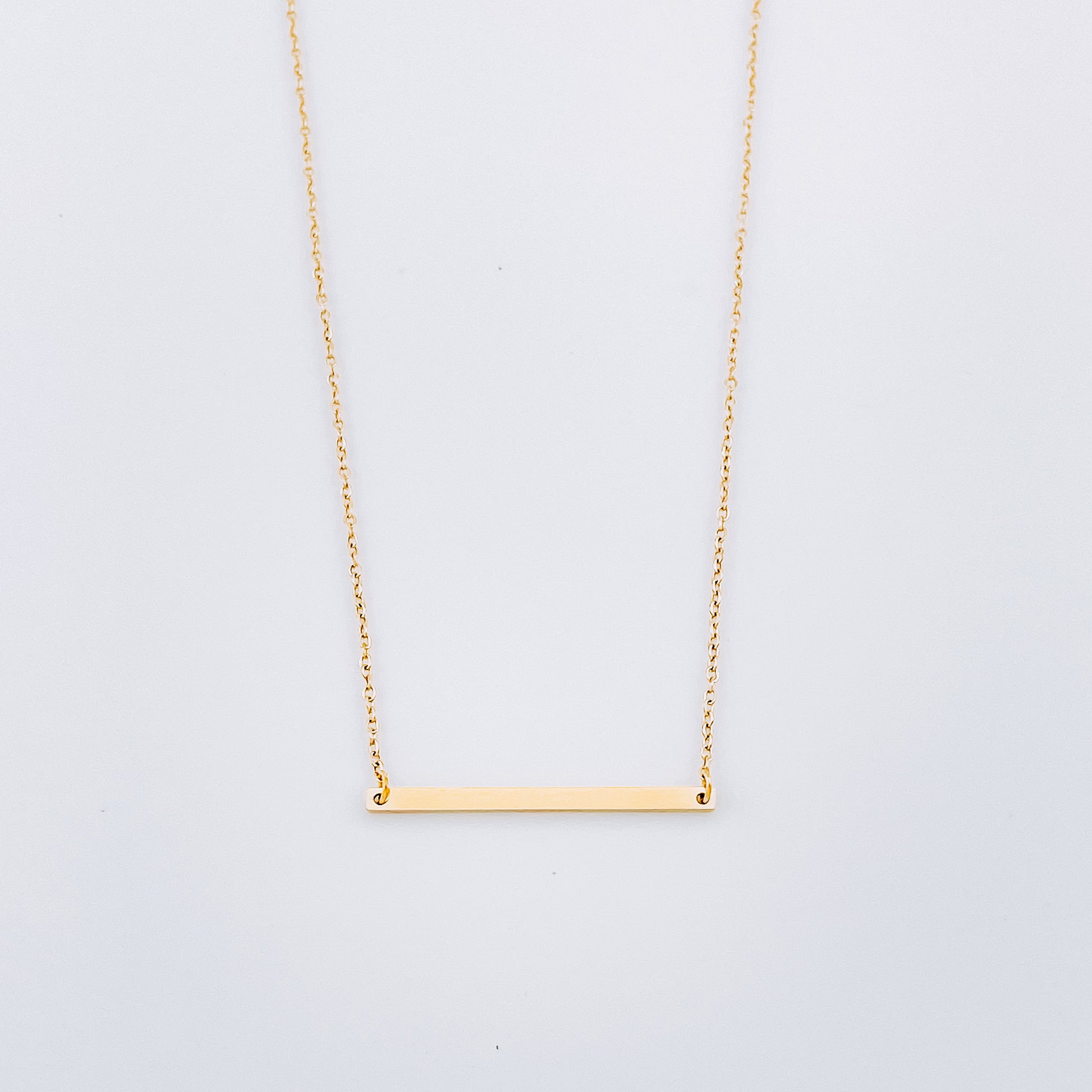 Timeless and refined, the Petite Luxe bar necklace is the epitome of effortless elegance. The sleek, horizontal pendant is beautifully finished in high-shine 14 karat gold plating, offering a clean, minimalist statement. Its simplicity makes it endlessly versatile — perfect for layering or wearing solo. Designed to elevate both everyday looks and evening attire, this piece adds a graceful touch of modern luxury.