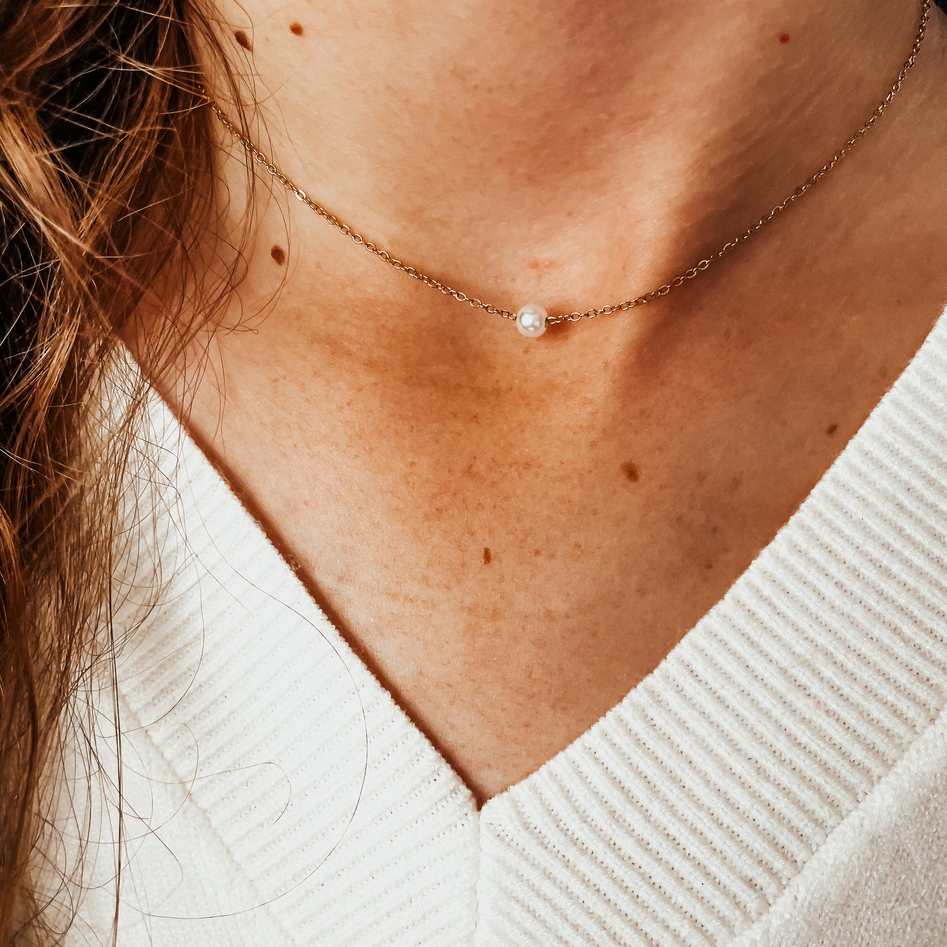 A timeless expression of elegance. The Serenity features a delicate gold chain necklace with single classic pearl pendant—classic beauty. Perfect for everyday wear for any occasion.